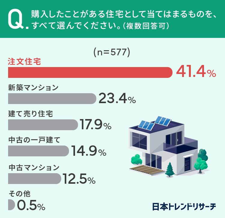 まずは購入したことがある住宅として当てはまるものを、すべて選んでもらいました。