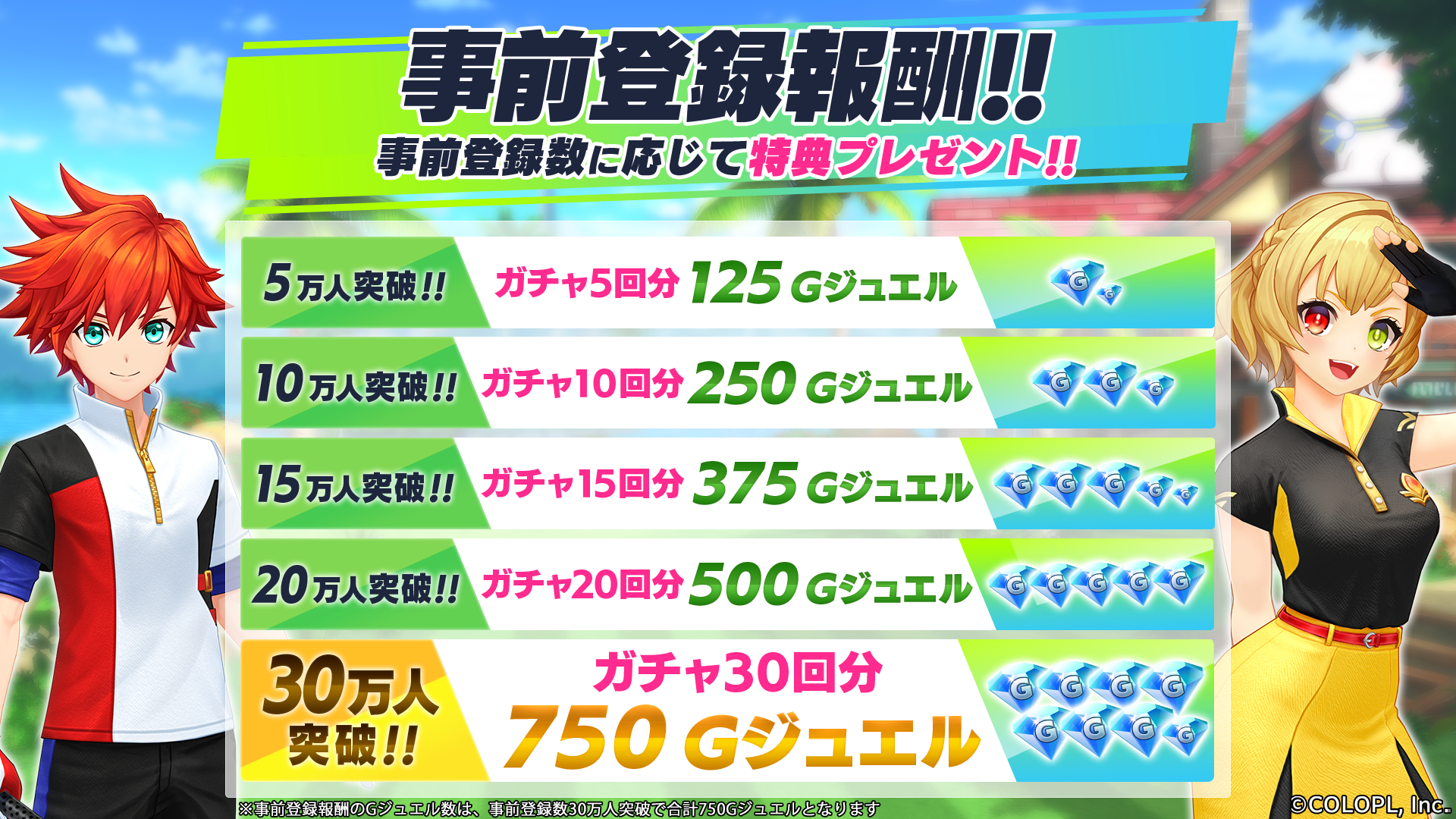 ※事前登録報酬のGジュエルは、事前登録数30万人突破で合計750Gジュエルとなります。