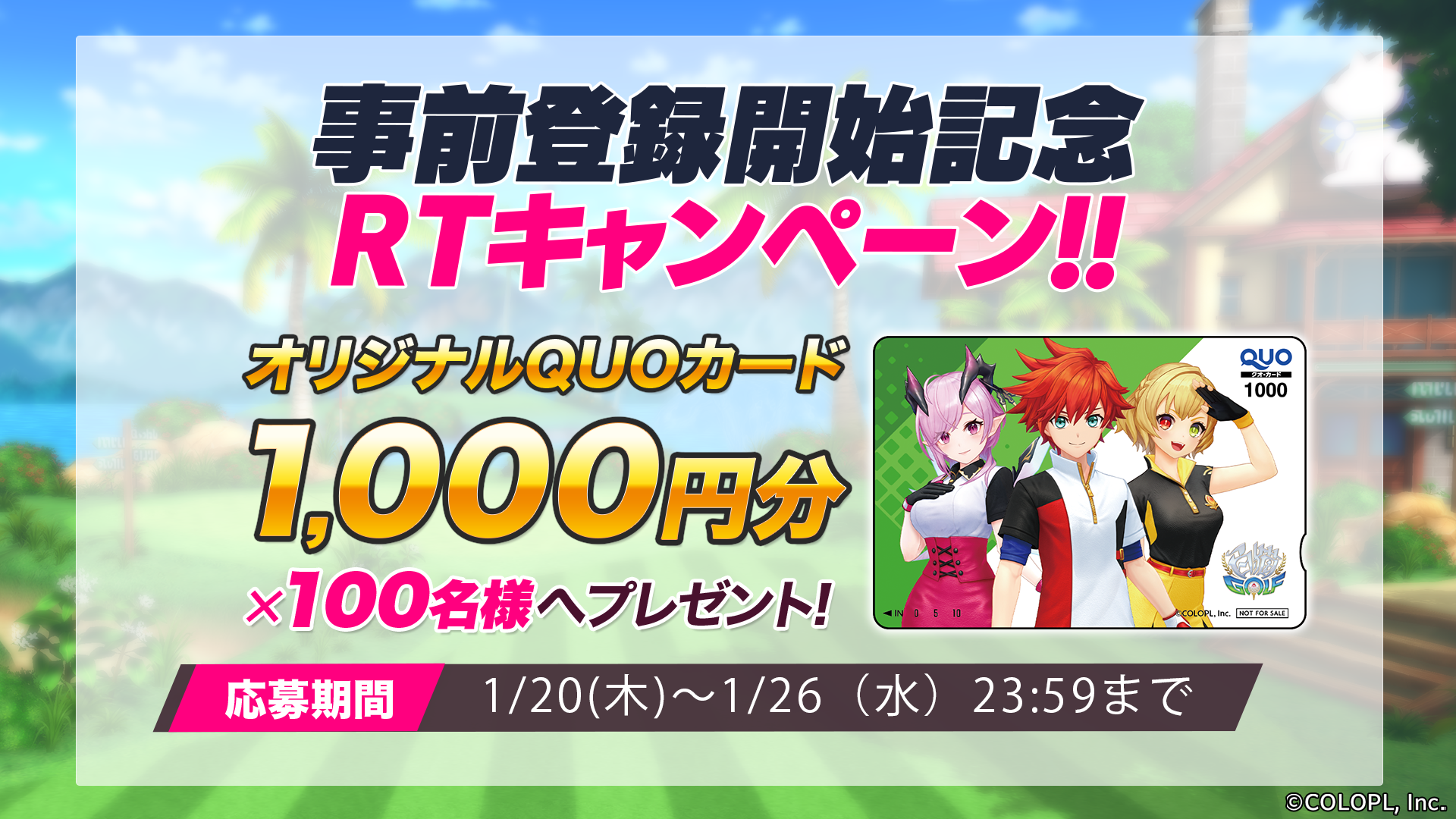 期間中に『白猫GOLF』公式Twitter(@wcat_golf)をフォローし、対象のツイートをリツイートすると、抽選で100名様にオリジナルQUOカード1,000円分をプレゼントいたします。