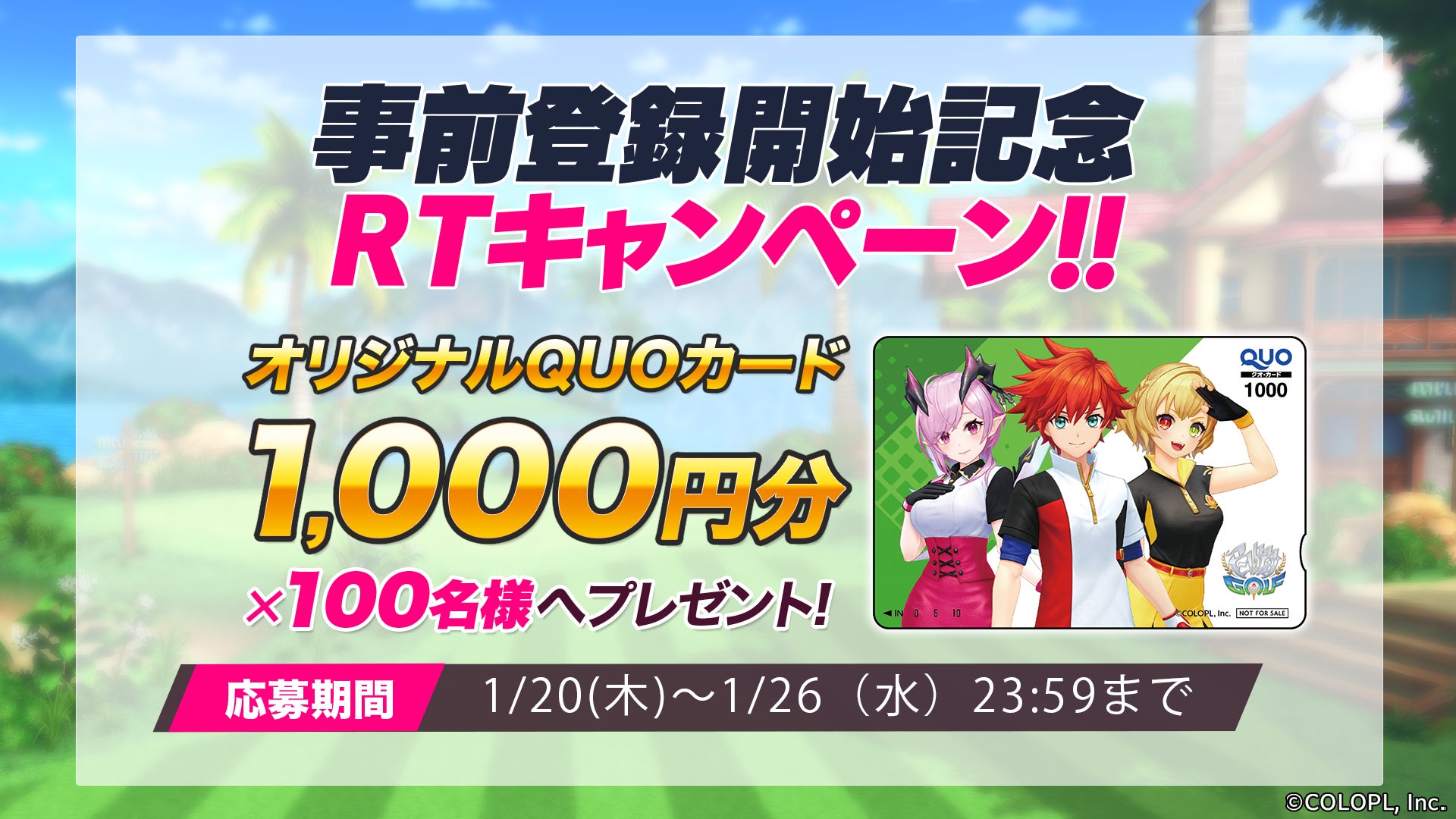 また、公式Twitterでは事前登録の受付開始を記念したリツイートキャンペーンも実施中です。抽選で『白猫GOLF』オリジナルデザインのQUOカードが当たりますので、ぜひ奮ってご参加ください。
