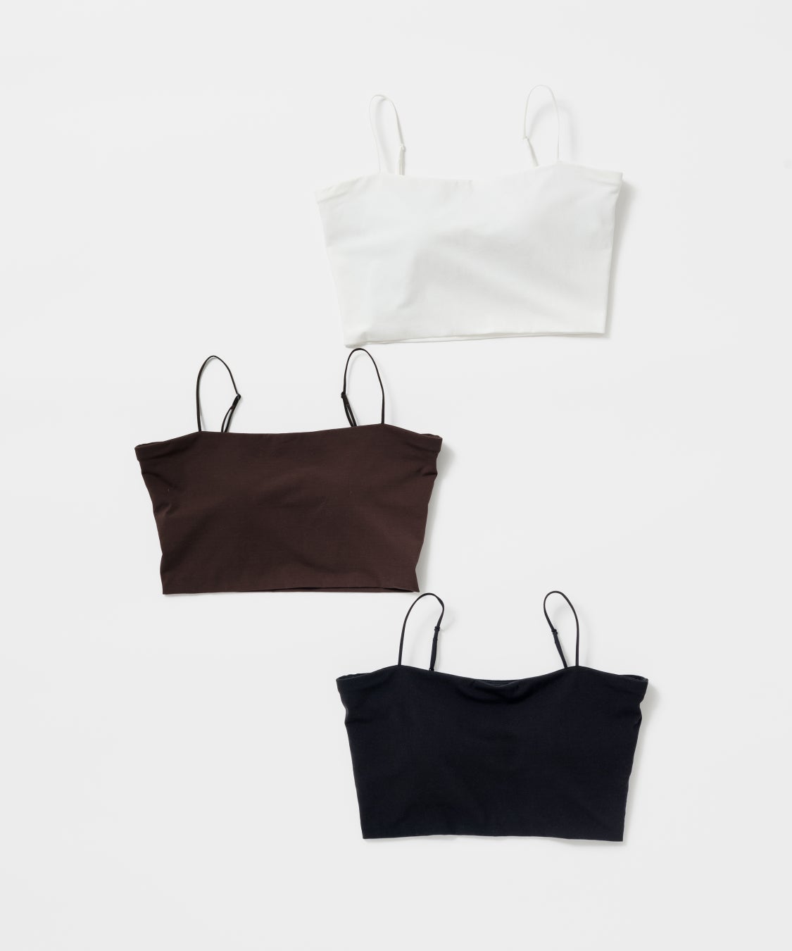 胸元のラインがストレートになるようにデザインされたチューブトップキャミソールは胸の谷間をさりげなくカバーし、ヘルシーに着こなせる1着。すっきり着られる短めの丈がデザインの特徴です。