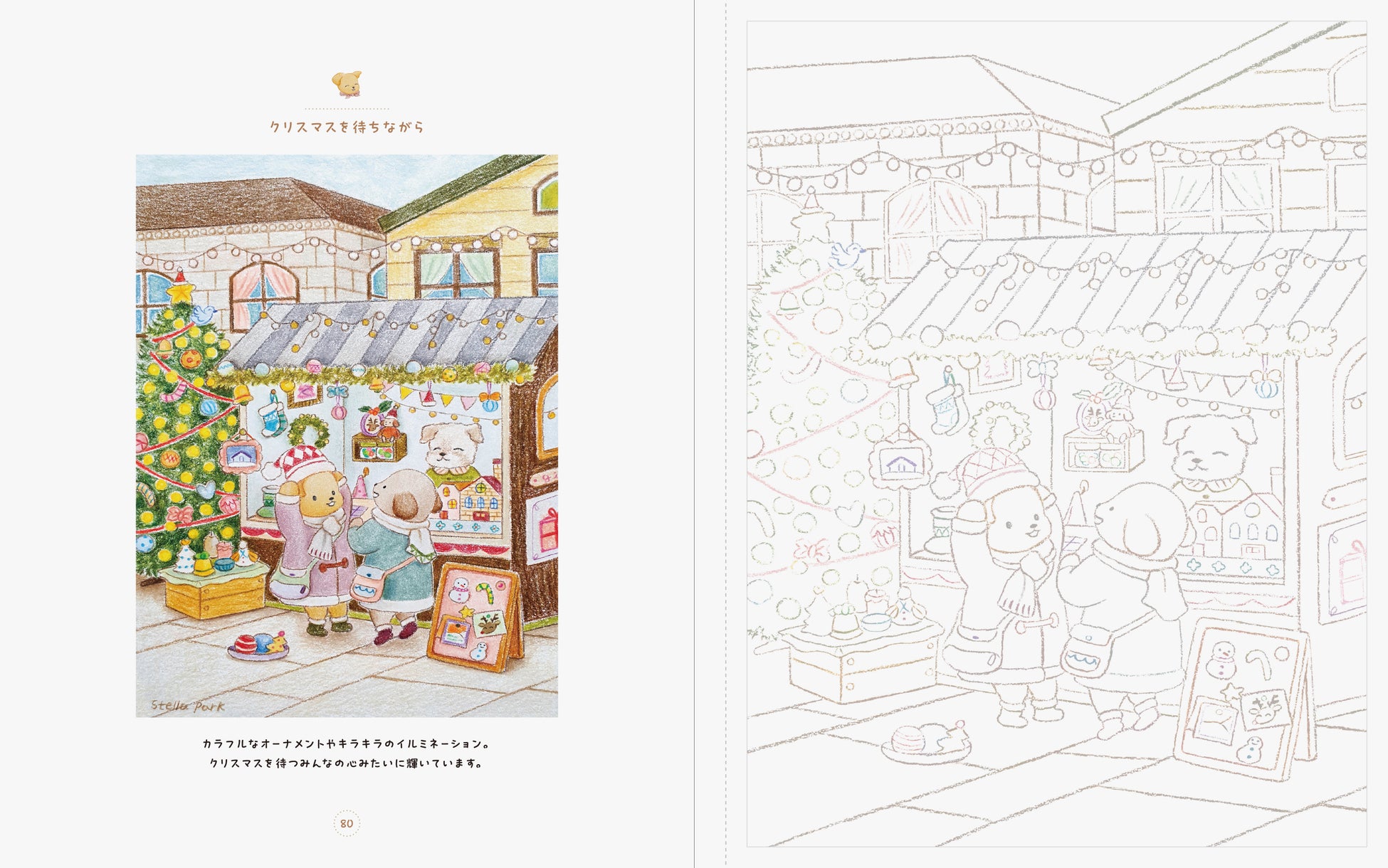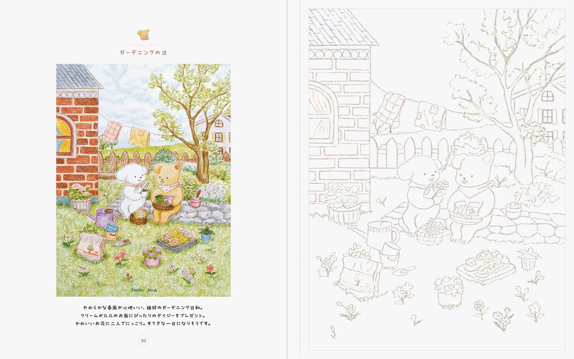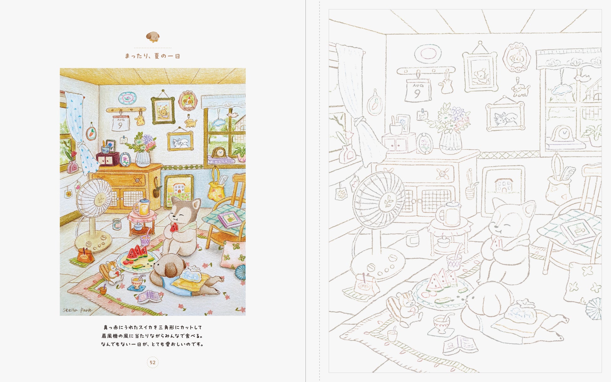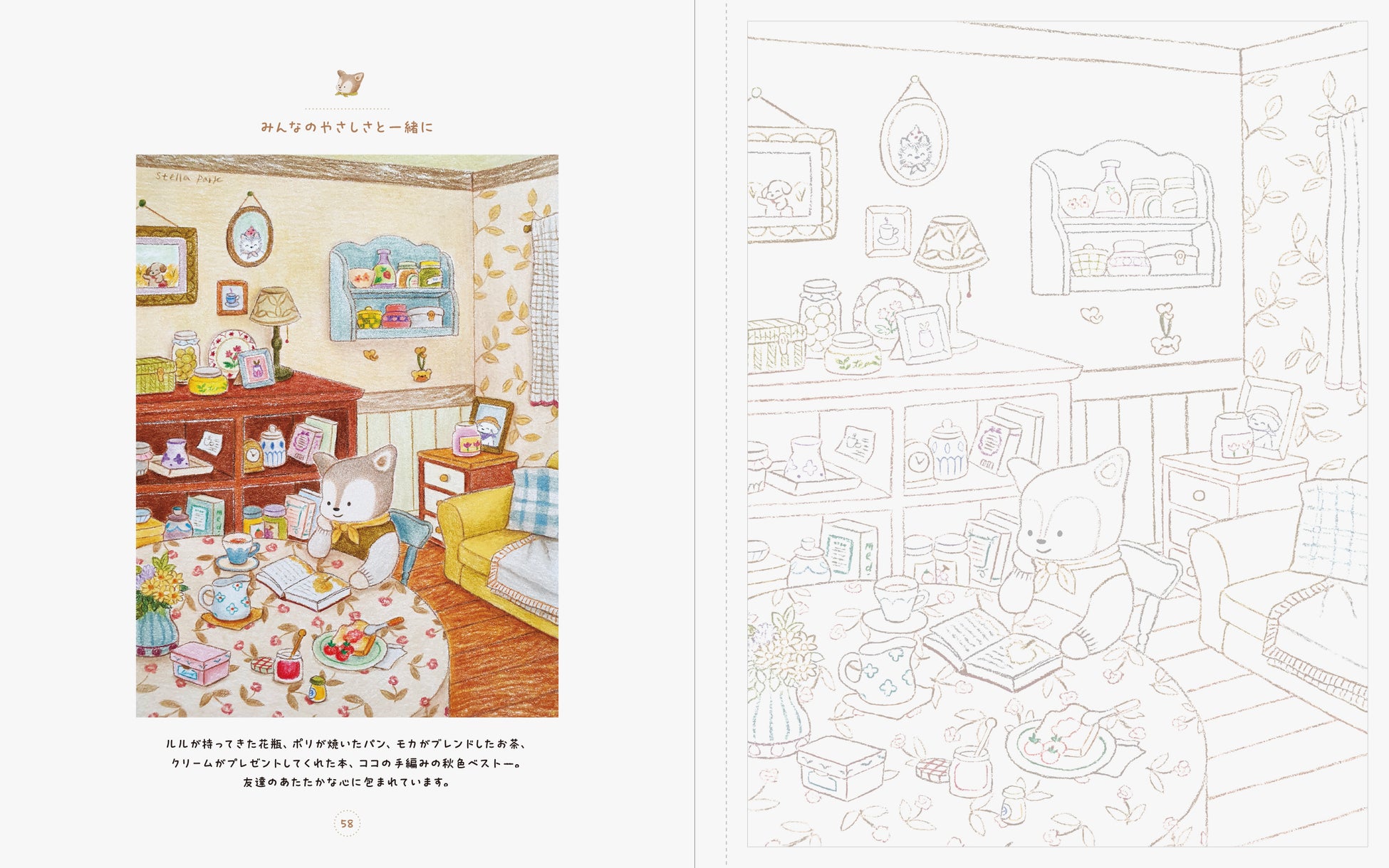 美しいステラ村に住んでいるなかよし6人組の動物たち。春夏秋冬、毎日が贈り物のように愛おしく、みんなで幸せな日々を過ごしています。この贈り物みたいな時間に、あなたをご招待します。ぬり絵は、きれいにぬろうとしたり、使う色を限定せずに思うままに想像を膨らませてぬってみてください。ふわふわな動物たちのやさしい日常に思わず笑みがこぼれます。