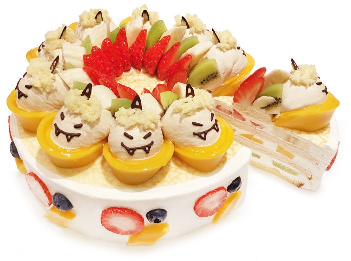 いちご、マンゴー、キウイなど彩り豊かなフルーツを黒蜜きなこクリームとあわせて飾り付けました。中にもフルーツをたっぷりとサンドし、見た目にも華やかな節分をイメージしたミルクレープです。