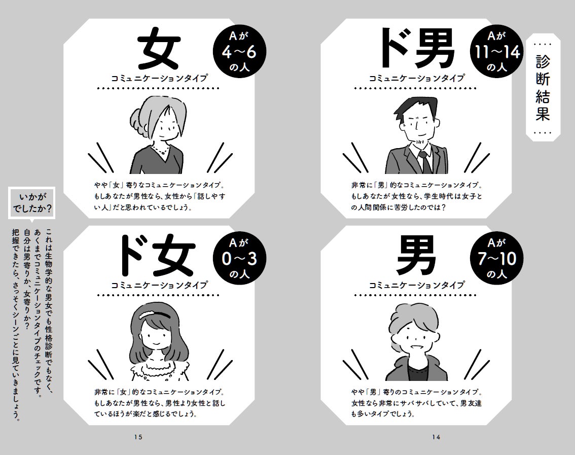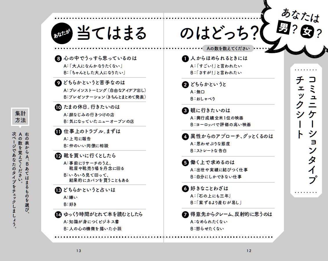 自分のコミュニケーションが、男タイプなのか、女タイプなのかは、本書のコミュニケーションタイプチェックシートで確認することができます。