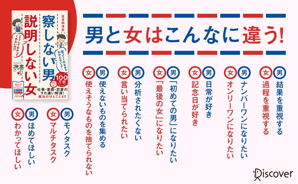 株式会社ディスカヴァー・トゥエンティワン(本社:東京都千代田区、取締役社長:谷口奈緒美)は2023年4月21日に『携書 察しない男 説明しない女』(五百田達成・著)を刊行しました。
