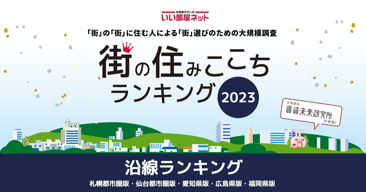 •新聞・雑誌、テレビ・ラジオ等の報道関係者におかれましては、本リリースを掲載・報道または引用する場合には、「いい部屋ネット 街の住みここち沿線ランキング2023<福岡県版>」と出所の表記をお願いします。