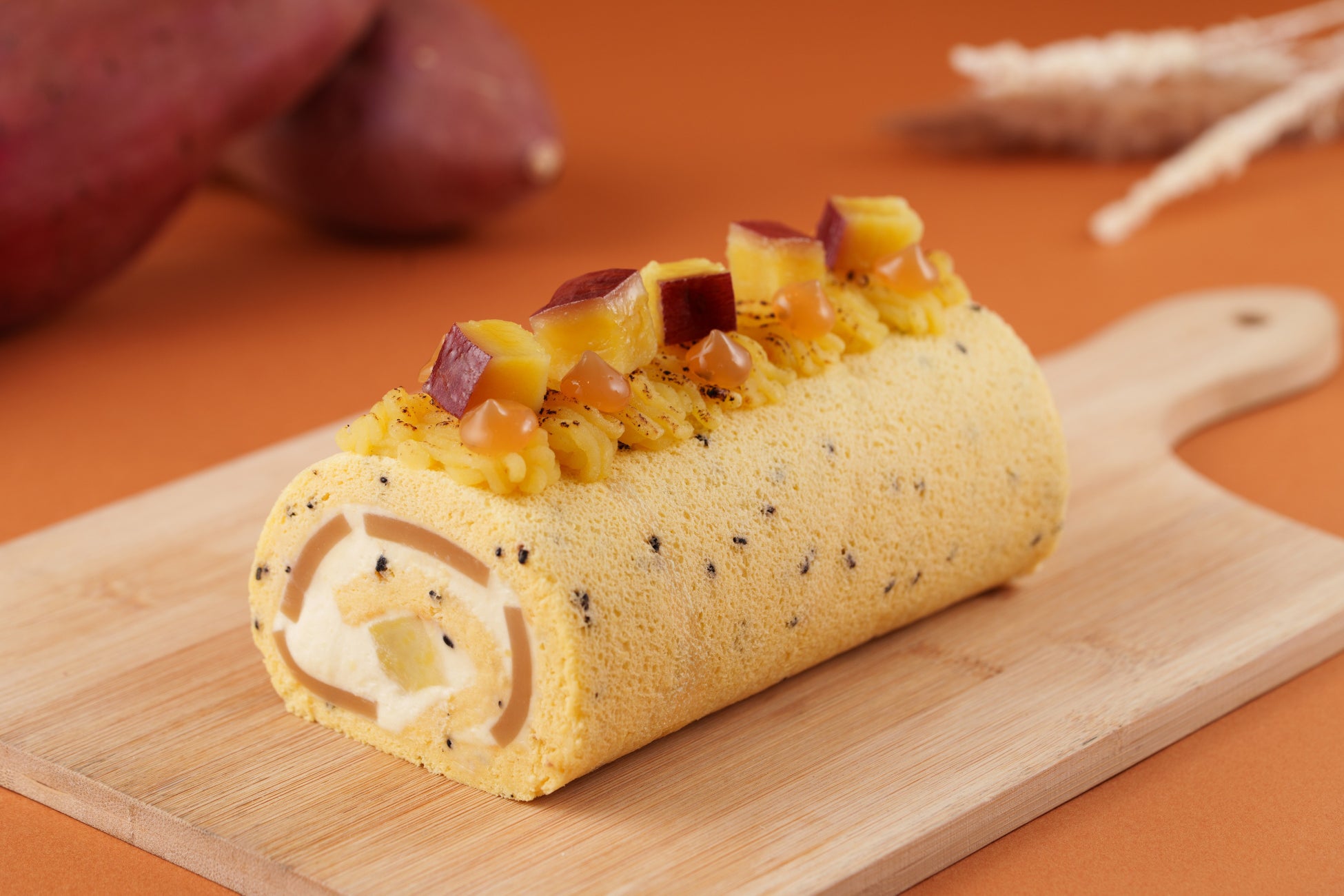 アフタヌーンティーセットと同時期に、上品な甘さとほくほく感が魅力の仙台金時のペーストを使用した、秋にぴったりなさつまいもとみたらしのロールケーキを販売いたします。やさしい甘さのクリームと、みたらし風味の羊羹を包み、大学いもを感じられるようなスイーツです。