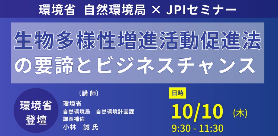 【JPIセミナー】環境省「”生物多様性増進活動促進法”の要諦とビジネスチャンス」10月10日(木)開催