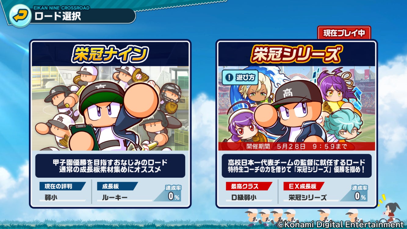 株式会社コナミデジタルエンタテインメントは、モバイルゲーム『パワフルプロ野球 栄冠ナイン クロスロード』(以下、『パワプロ 栄冠クロス』)において、期間限定ロード「栄冠シリーズ」を開催することをお知らせします。