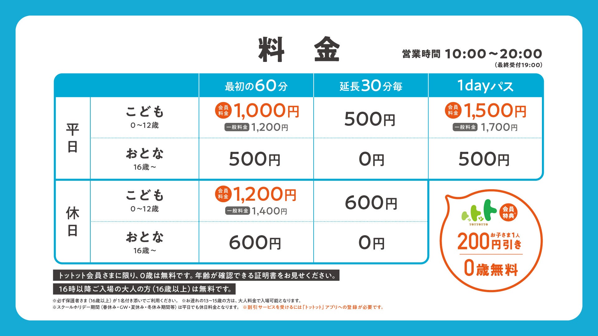 (0歳のトットット会員のお子さまは無料です※年齢がわかる証明書をお持ちください)