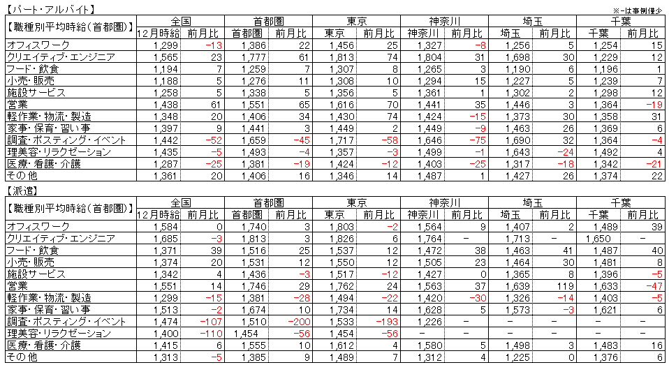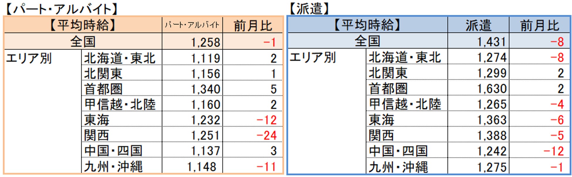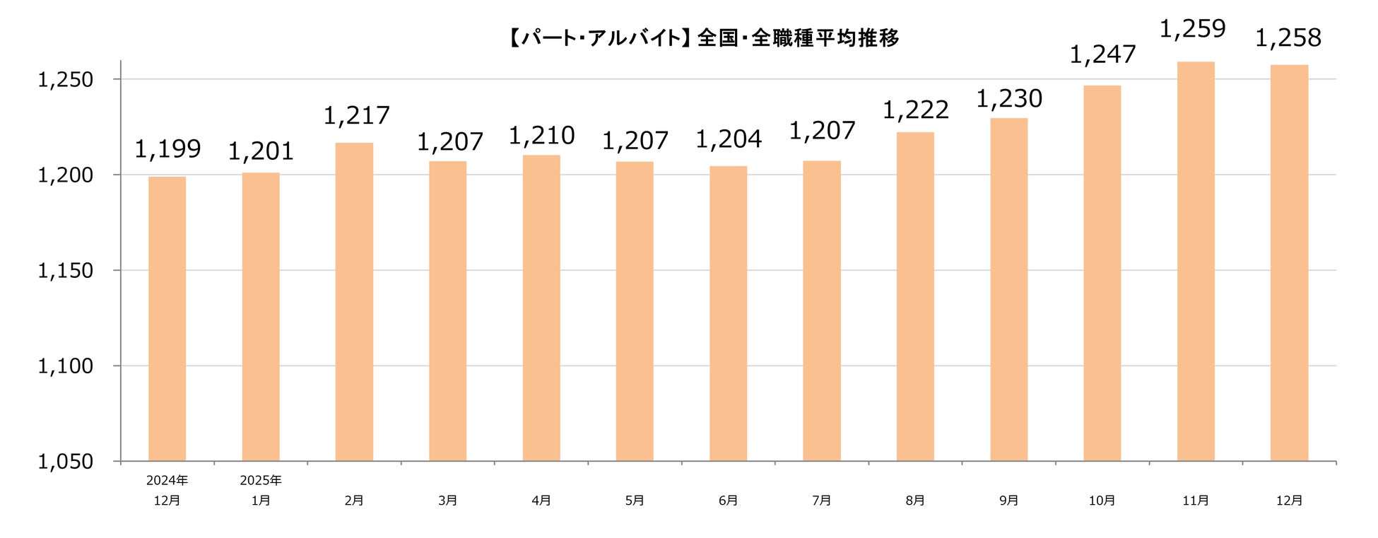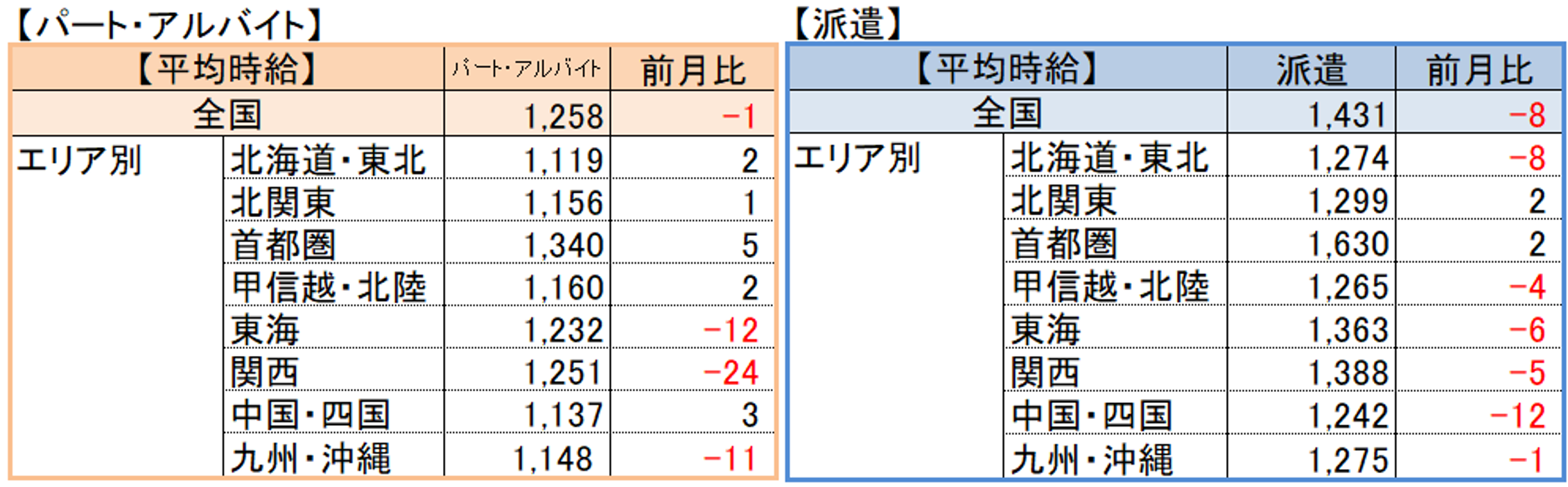 【パート・アルバイト】全国・全職種平均時給は1,258円。前月比ー1円。前年同月比+59円。