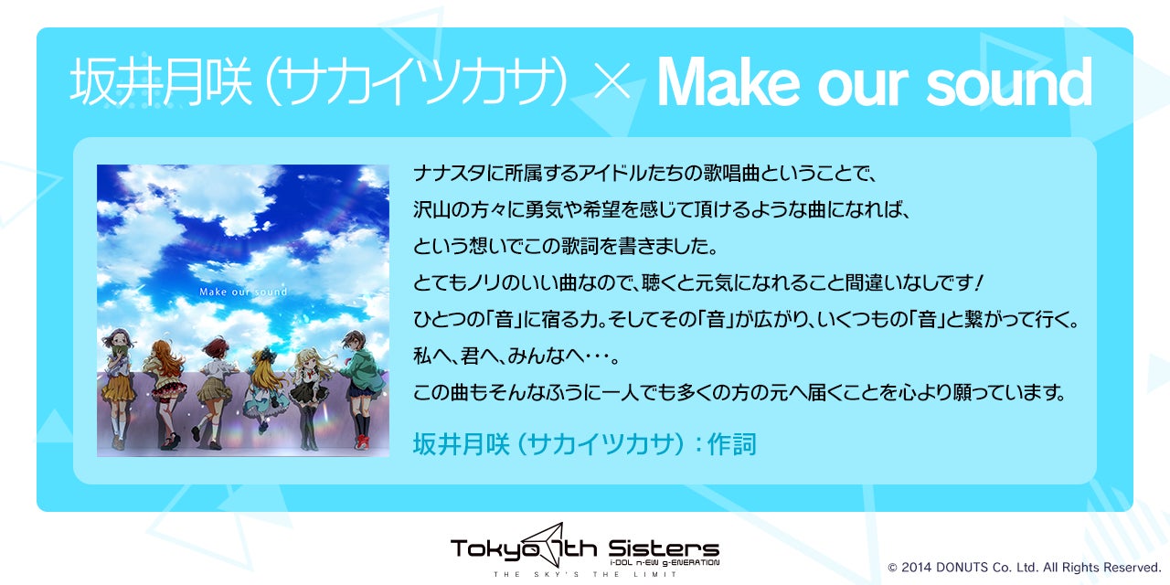 - 「EPISODE NANASUTA」のテーマソング、新曲『Make our sound』公開!
