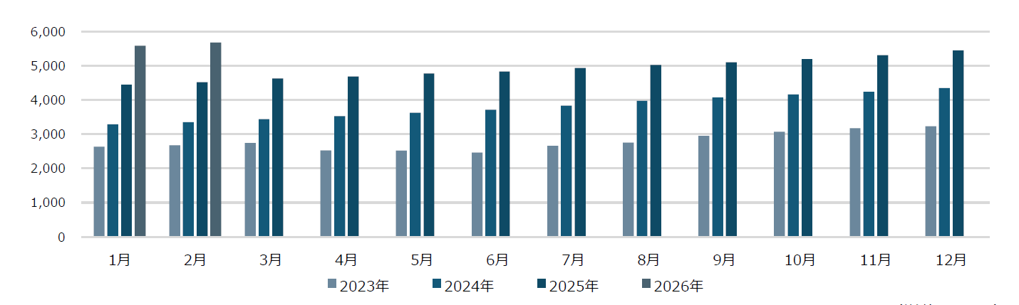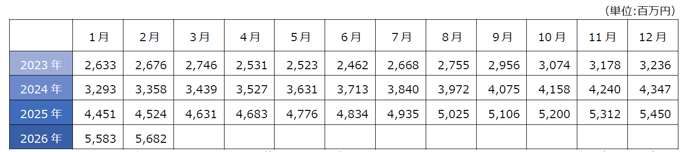 (注)決済手段により3か月毎に1か月の日数(通常月は28営業日、特別月は35営業日)に変動があること、四半期決算期末月毎に決算調整を行っていること等から、月次では金額が変動するため、3か月移動平均を採用しております。