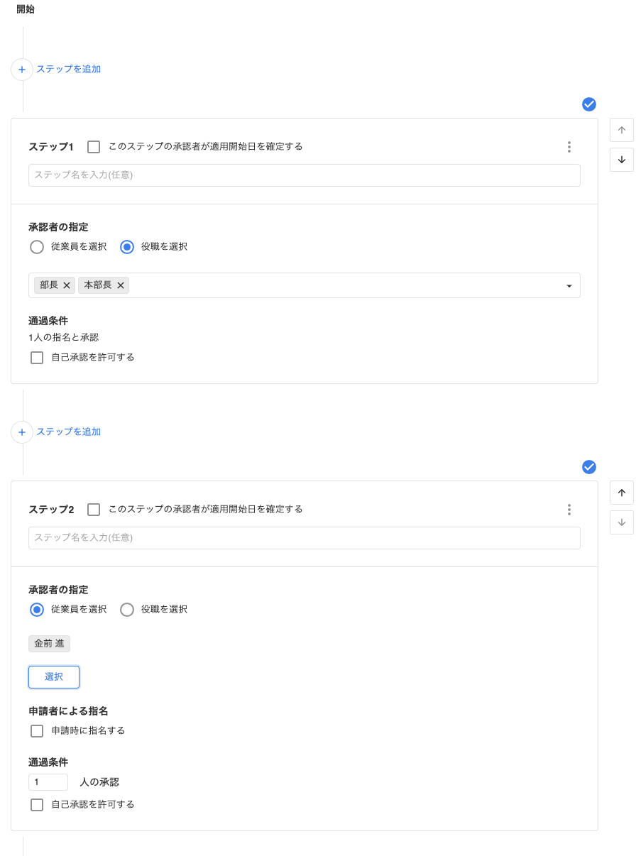 各種申請において、複数の従業員や役職者が承認を行うことが可能となります。これまでは、承認が1ステップのみ設定可能でしたが、「共通ワークフロー機能」の実装により、最大10ステップまで設定可能になります。