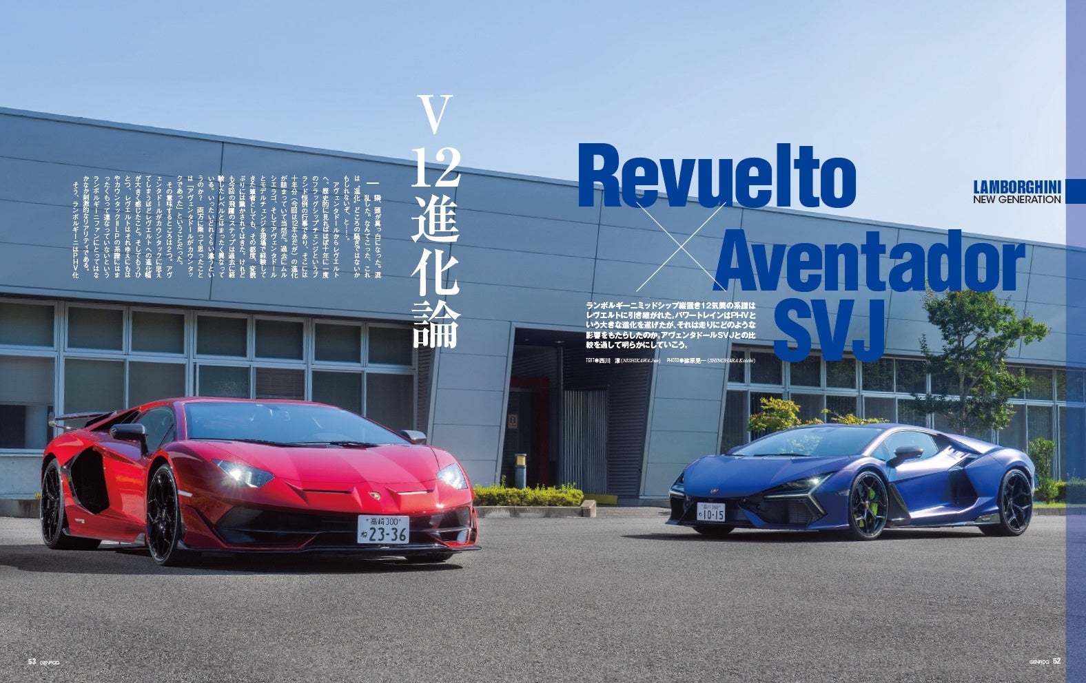 ミッドシップ縦置きV12の系統は「 レヴエルト 」に引き継がれた。パワートレインはプラグインハイブリッドという大きな進化を遂げたが、それは走りにどのような影響をもたらしたのか。先代モデル「 アヴェンタドールSVJ 」との比較を通して明らかにしよう。