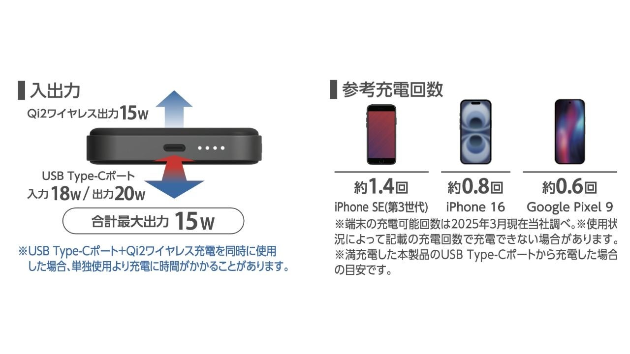 マグネットでピタッと簡単充電! ケーブルいらずでワイヤレス充電ができる Qi2対応ワイヤレスモバイルバッテリーを新発売