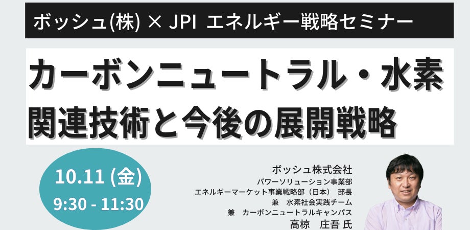 【JPIセミナー】ボッシュ(株)「カーボンニュートラル・水素関連技術と今後の展開戦略」10月11日(金)開催