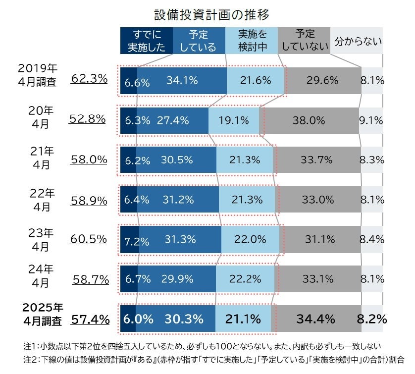 企業の57.4%が設備投資を計画、先行き不安で2年連続低下 「コスト高」や「トランプ関税」に対する懸念多く
