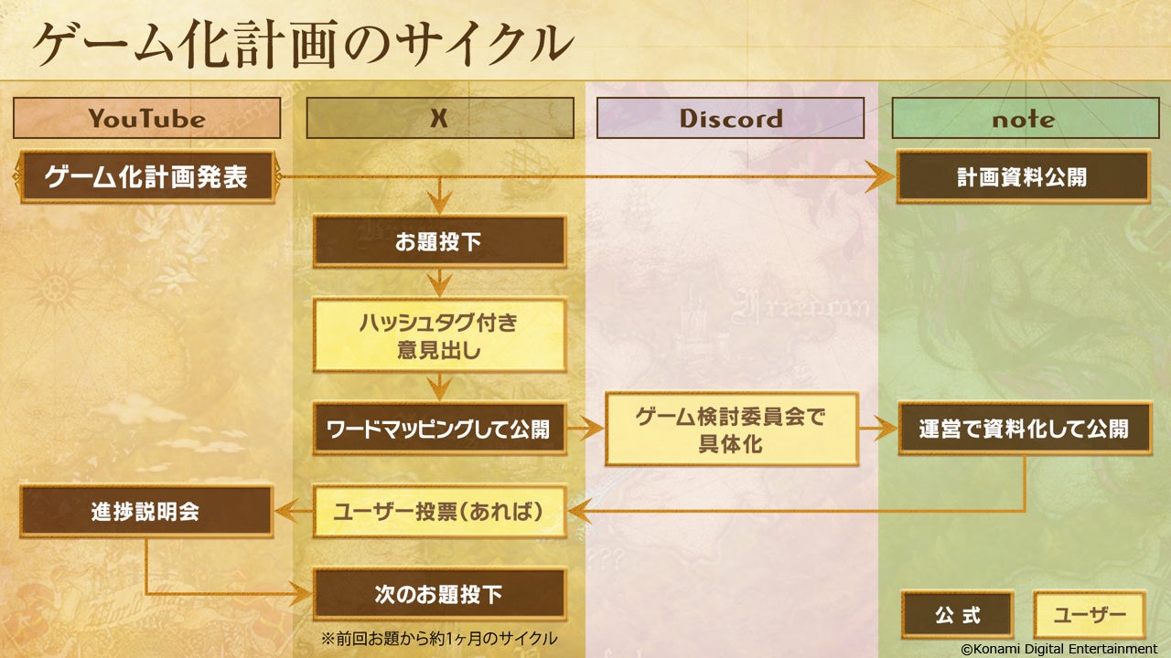 ゲーム化計画は、「PROJECT ZIRCON」公式noteで公開するゲーム化計画資料をもとに進行します。計画に即したお題を「PROJECT ZIRCON」公式Xで投稿し、お客様がハッシュタグをつけて公式Xにお題の回答を投稿いただくことで、どのようなゲームにしていくかが決まります。本日21時、「PROJECT ZIRCON」公式YouTubeで、具体的な計画や、最初のお題についてプレミア公開します。ぜひご覧いただき、多くの皆様でゲーム作りにご参加ください!