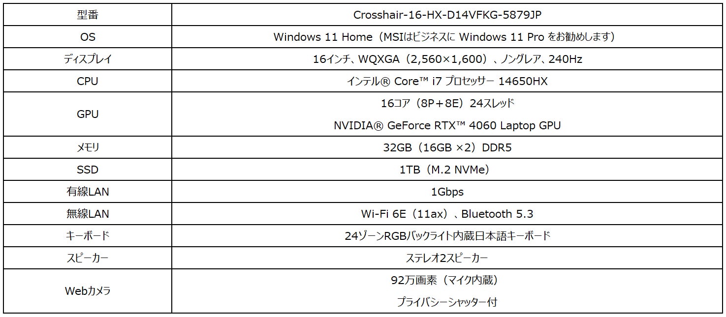 【Crosshair-16-HX-D14VFKG-5879JPの主な特徴】