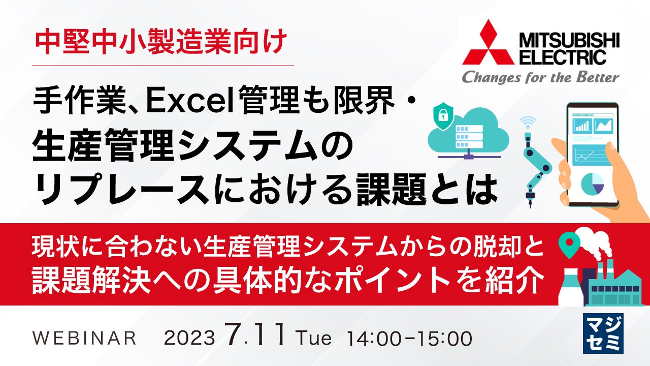 マジセミ株式会社は「手作業、Excel管理も限界・生産管理システムのリプレースにおける課題とは」というテーマのウェビナーを開催します。