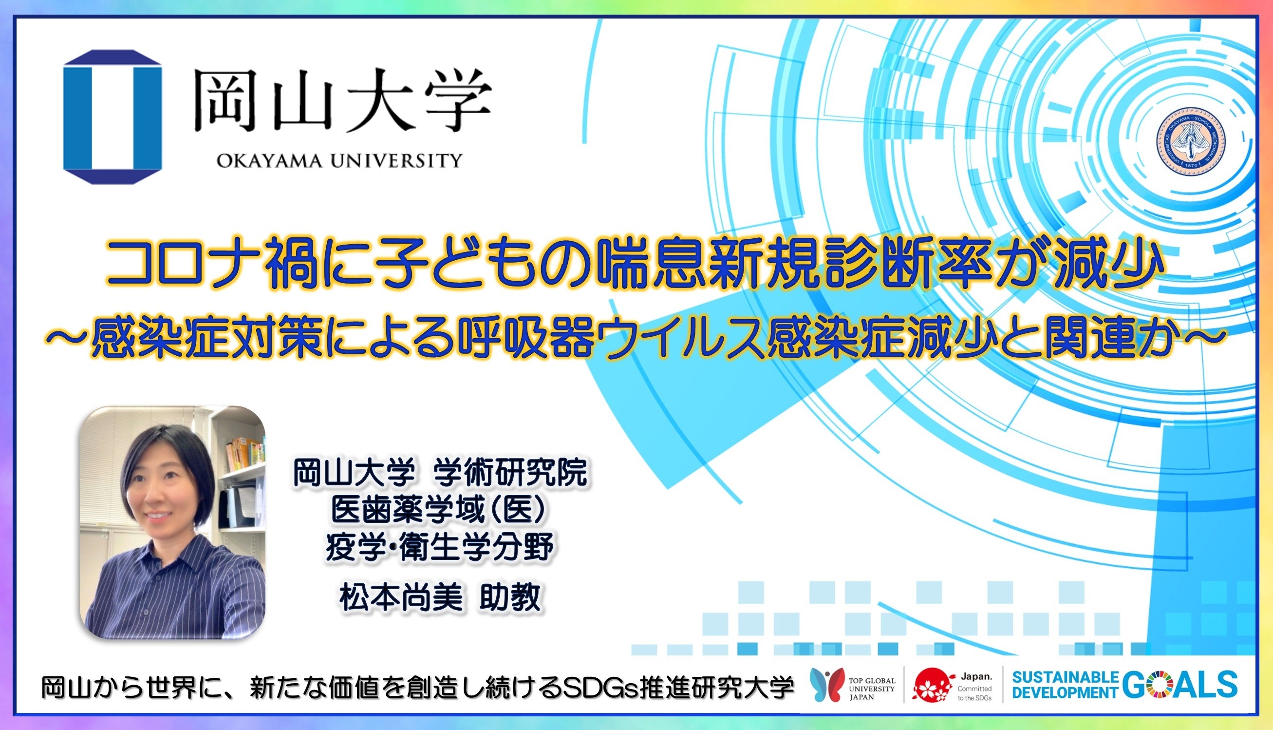 【岡山大学】コロナ禍に子どもの喘息新規診断率が減少 ~感染症対策による呼吸器ウイルス感染症減少と関連か~