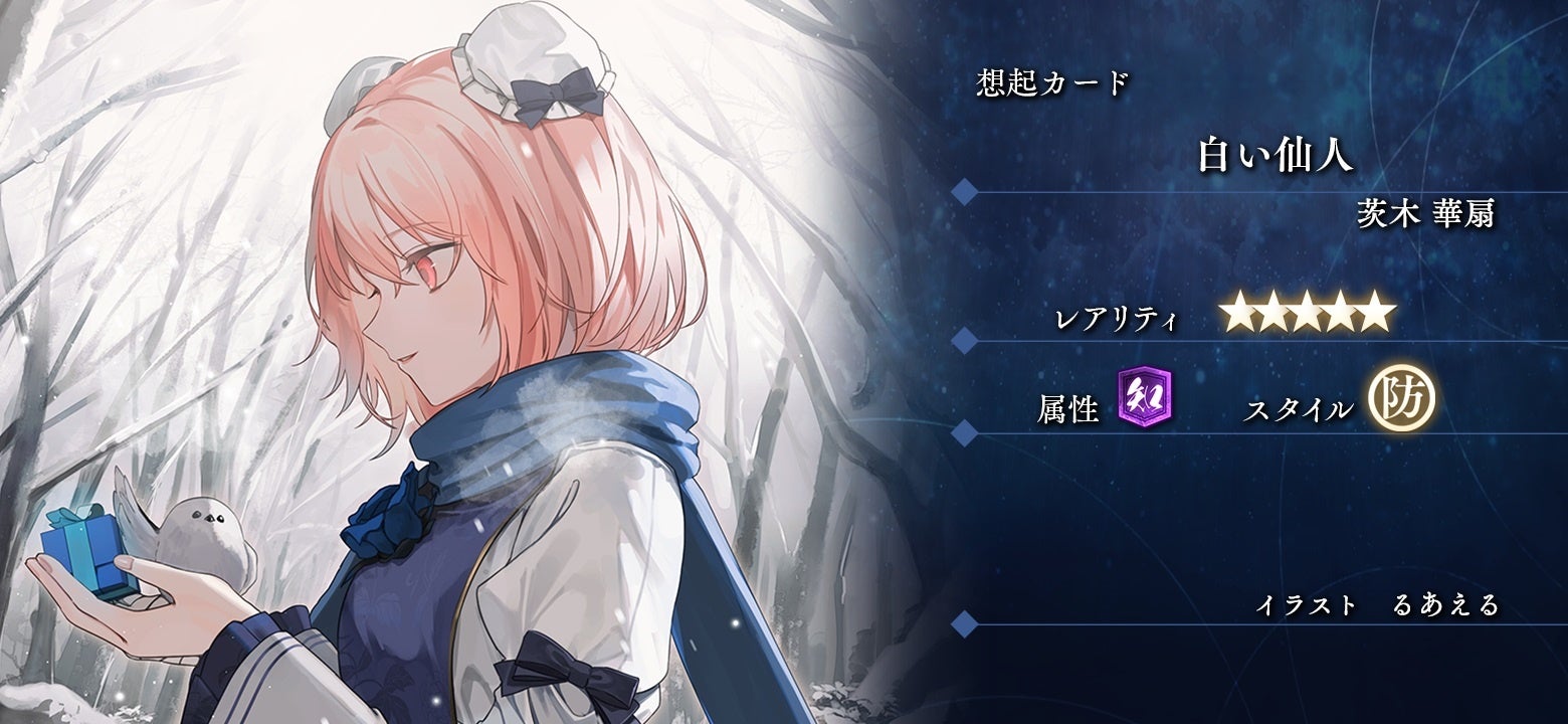 12月15日(日) より、想起カード『サイレンナイト・ホーキーナイト』の出現率が上昇している『季節限定 Xmas魔理沙ピックアップ 追憶の願掛け』を開催いたします。