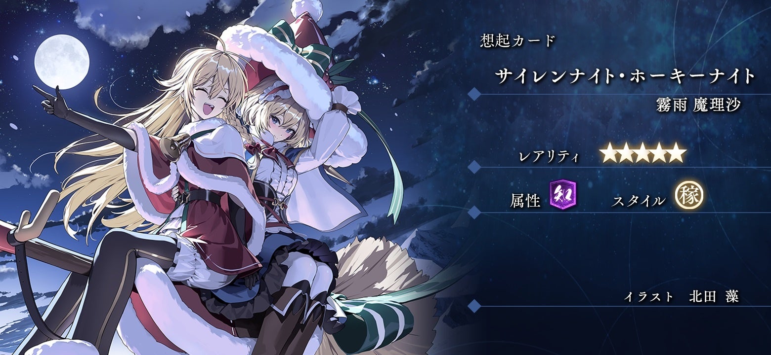 ■想起カード『サイレンナイト・ホーキーナイト』が登場!季節限定 Xmas魔理沙ピックアップ 追憶の願掛け開催!