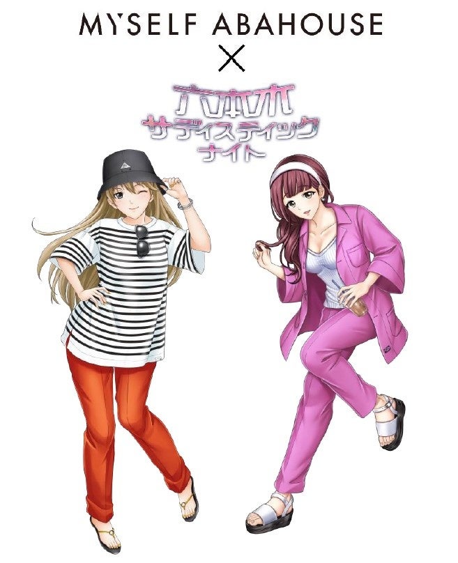 本企画は「六本木サディスティックナイト」初のアパレルブランドとのコラボレーションです。「六本木サディスティックナイト」に登場する人気キャラクター・ナツとユウキが、「MYSELF ABAHOUSE」の