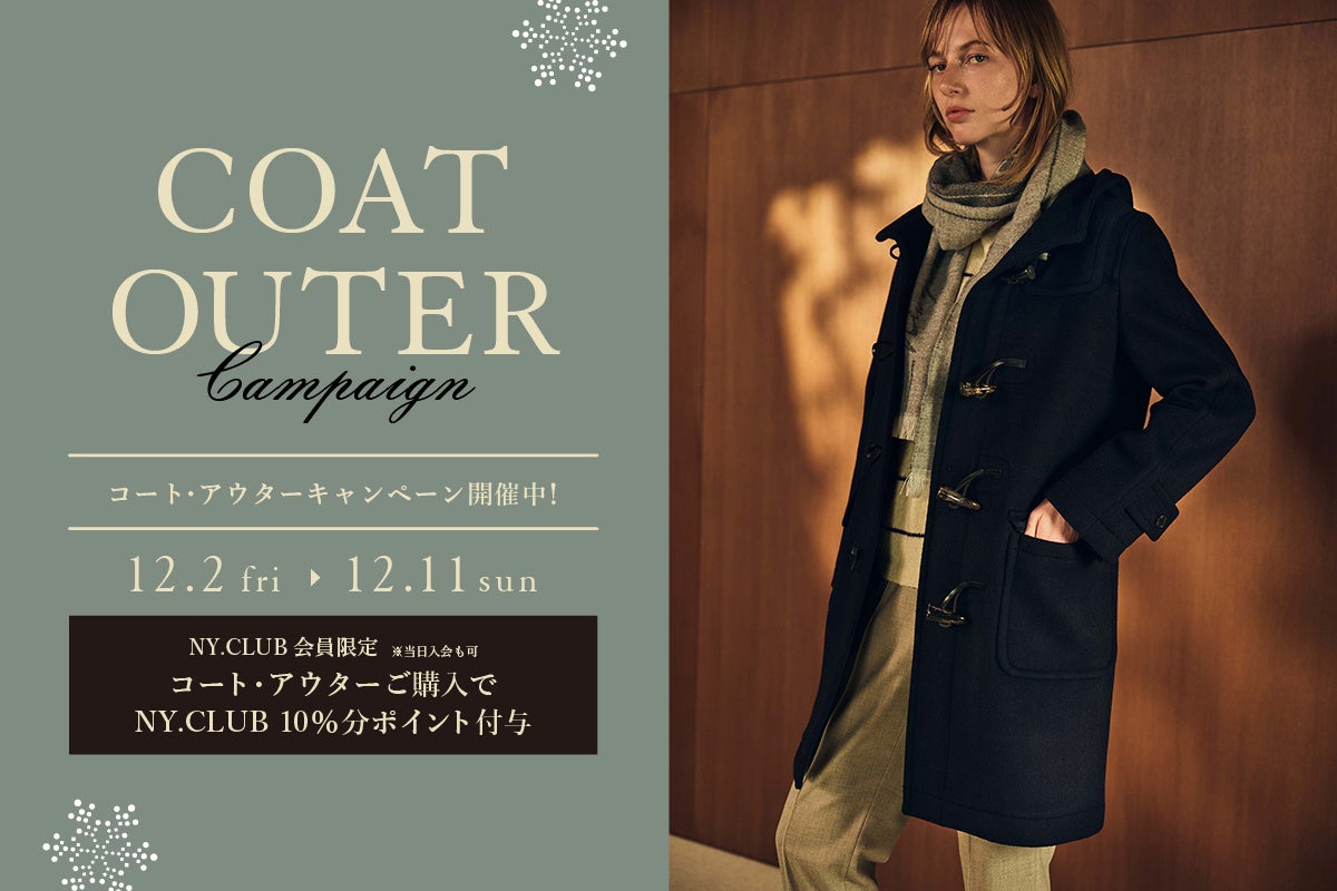 期間中コート・アウターを購入すると『NY.CLUB』ポイント10%分プレゼント!