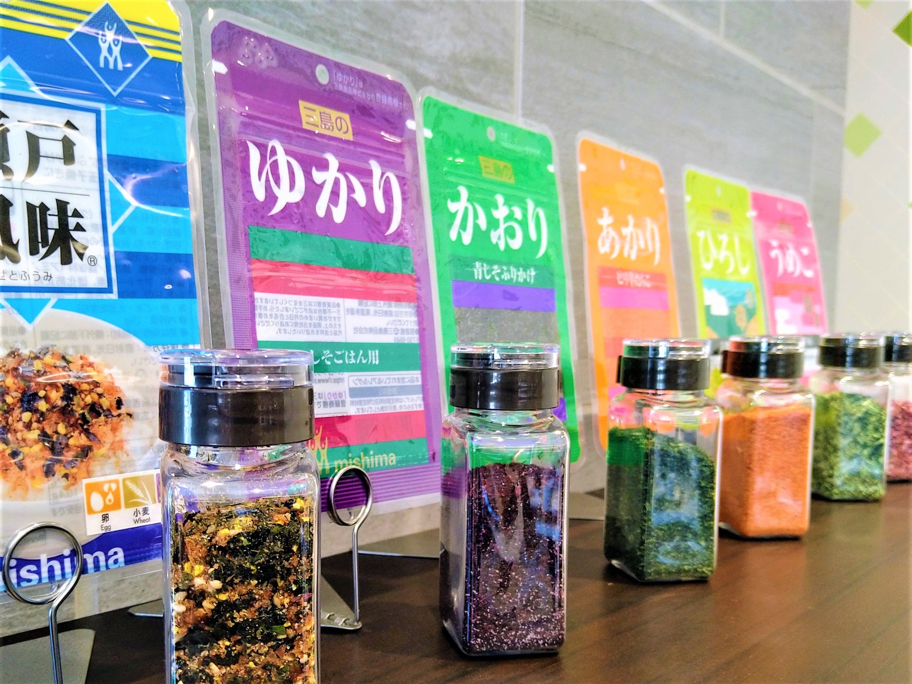 また、広島県で生まれた魅力的な商品を味わっていただく事により、広島県の魅力を全国のお客様に発信したいという想いから、1949年(昭和24年)に広島市にて創業した三島食品株式会社の代表商品「ゆかり®」を中心とした商品も豊富に取り揃えました。誰もが一度は目にしたことがある紫色のパッケージの赤しそふりかけ「ゆかり®」を始め、青じその風味が広がる「かおり®」、ピリ辛たらこを使用した「あかり®」など、多彩なふりかけをご用意しており、お好みのふりかけをお選びいただけます。