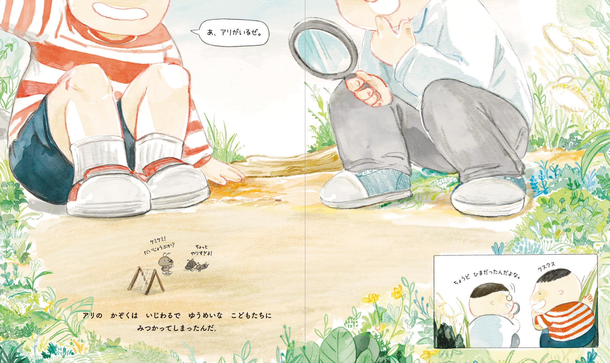 森に働き者のアリの夫婦がいました。ある時、人間のいじわるな子供がアリの夫婦を踏んづけてぺしゃんこにしてしまいます。夫婦の息子は両親をなんとか病院へ運びました。病院の先生は、あの手この手で治療法を試みます。果たしてアリの家族は……。