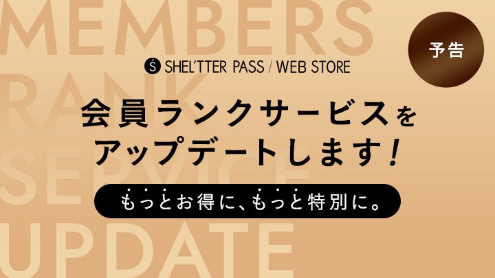 「SHEL'TTER PASS(シェルターパス)」会員ランクサービスをアップデート!もっとお得に、もっと特別に。