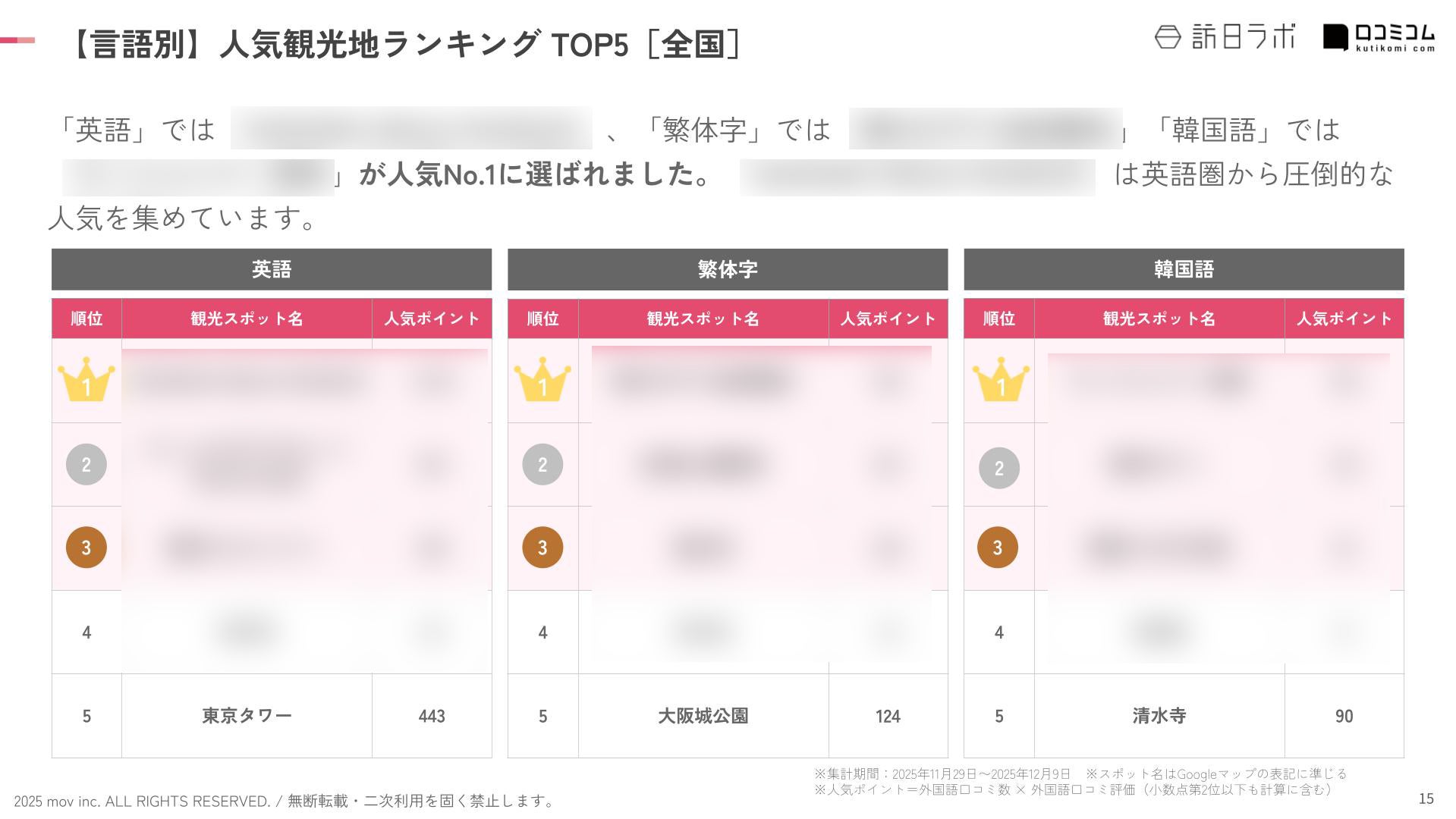 ここからは、独自調査で明らかとなった人気観光スポットの分析結果を一部ご紹介します。