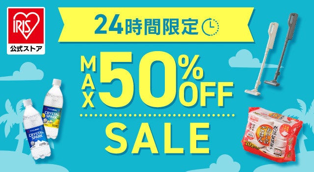 アイリスプラザ店内、最大50%割引でおトクにお買い物いただける割引セールを開催します。そのほか期間中に対象商品をご購入いただくと、最大20%のポイント還元やおトクな割引クーポンをご用意します。