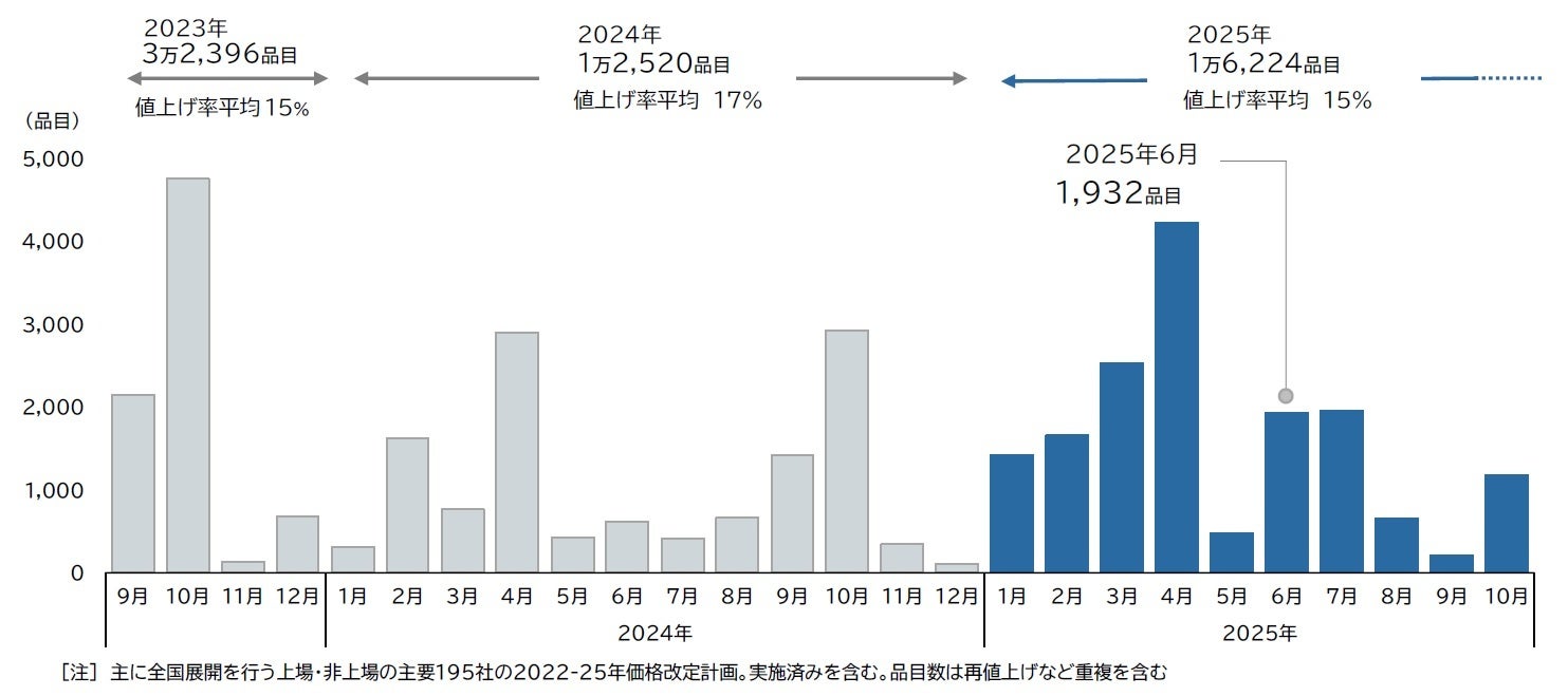 2025年6月の値上げ、1932品目 前年の約3倍に増加