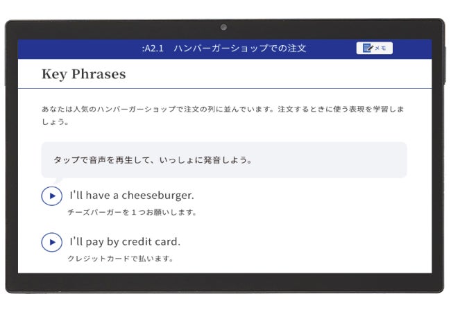好きな教科について友人と会話をしてみたり、ハンバーガーショップで注文をしてみたりと、日常生活のなかで活きるスピーキングの力を習得することができます。