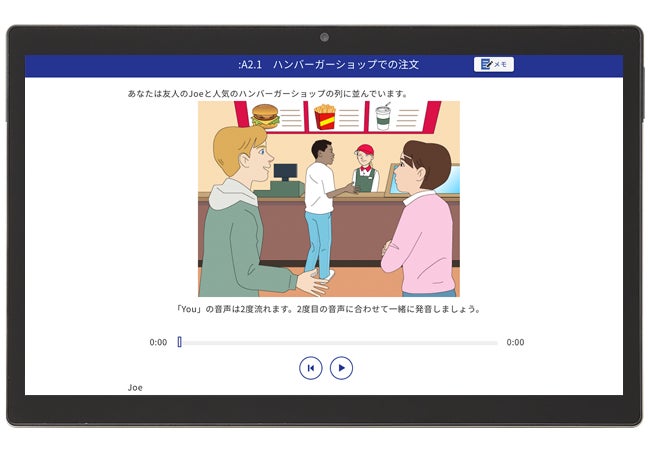 「AI Speaking」では、学校の教室での会話や飲食店での注文のやり取りなど、中学生の日常生活を舞台に設定することで、中学生が興味をもって取り組み、実際の利用シーンをリアルにイメージしながら英語を話せるようなレッスン内容としています。