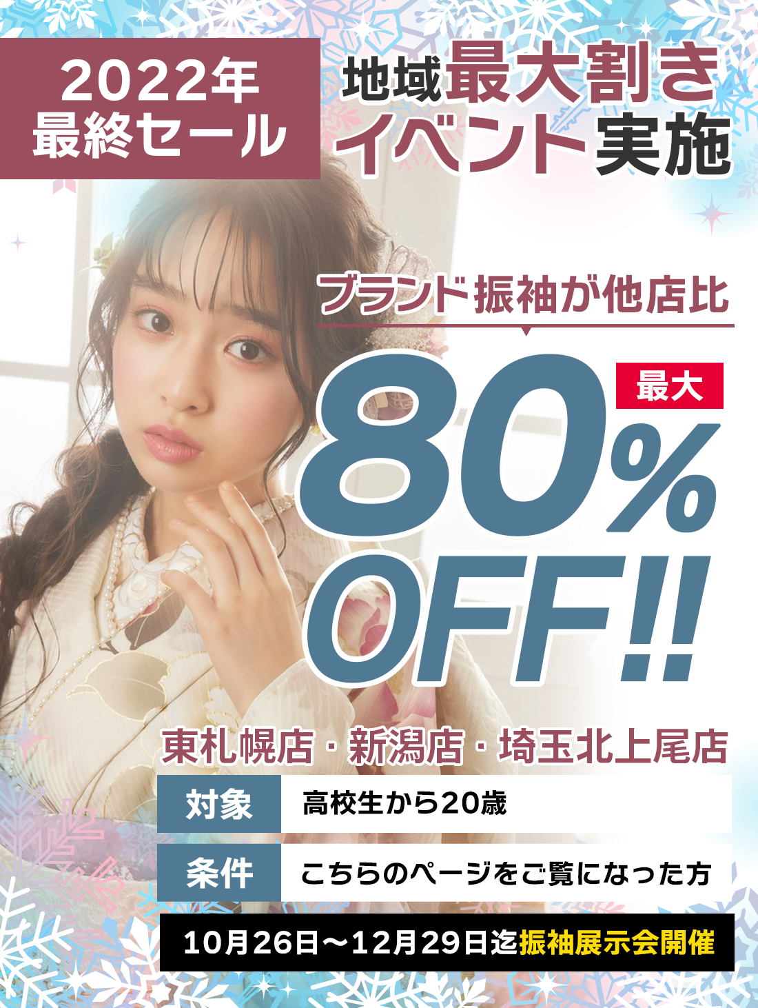 成人式に向けて振袖レンタルを考えている方のための振袖着用イベントを是非ご利用ください。