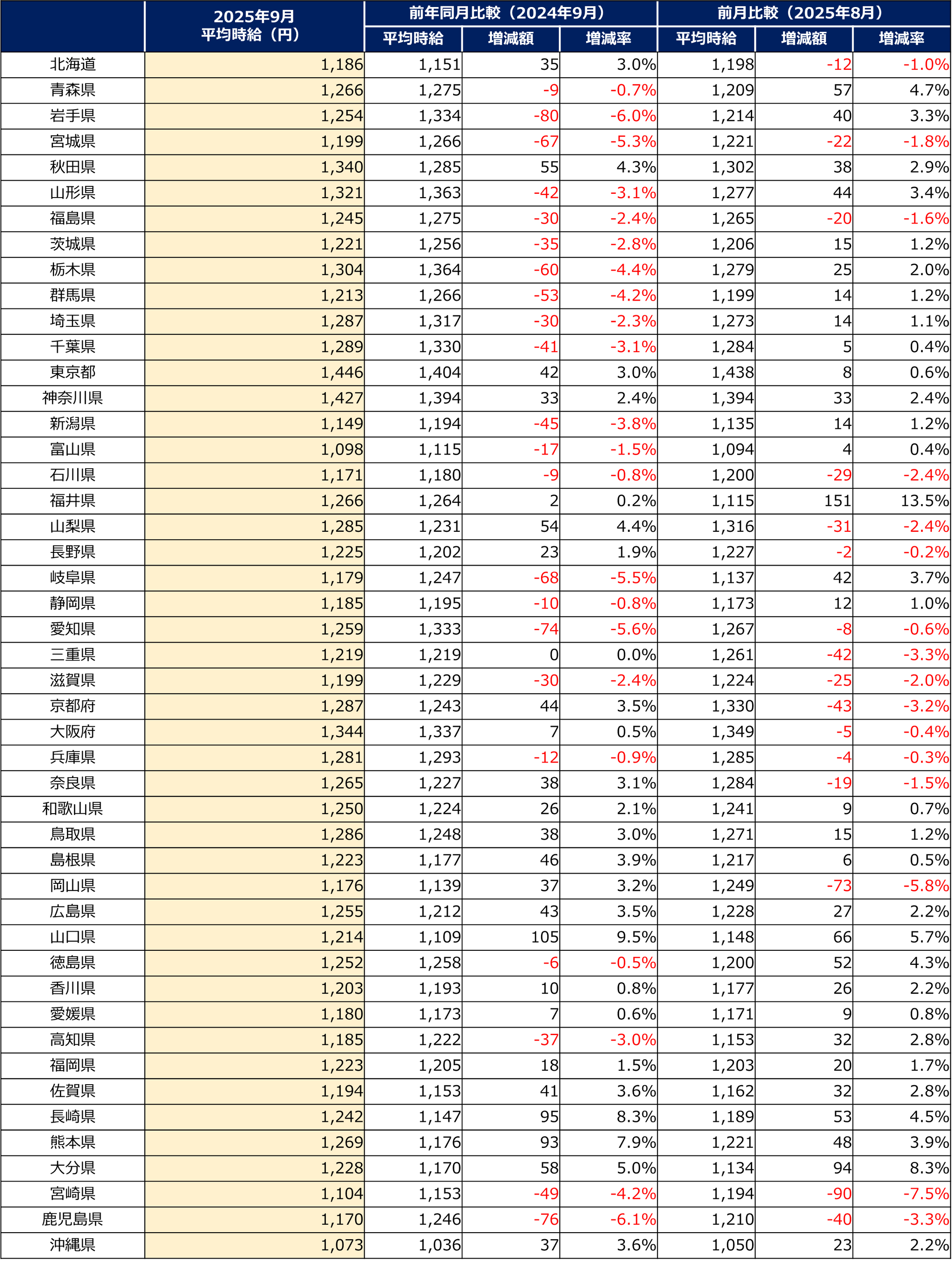エン株式会社(本社:東京都新宿区、代表取締役会長兼社長:越智通勝)が運営する国内最大級の総合求人サイト『エンゲージ』(https://en-gage.net/)で、2025年9月度の「全国アルバイト・パート募集時平均時給調査」をまとめましたので、ご報告致します。