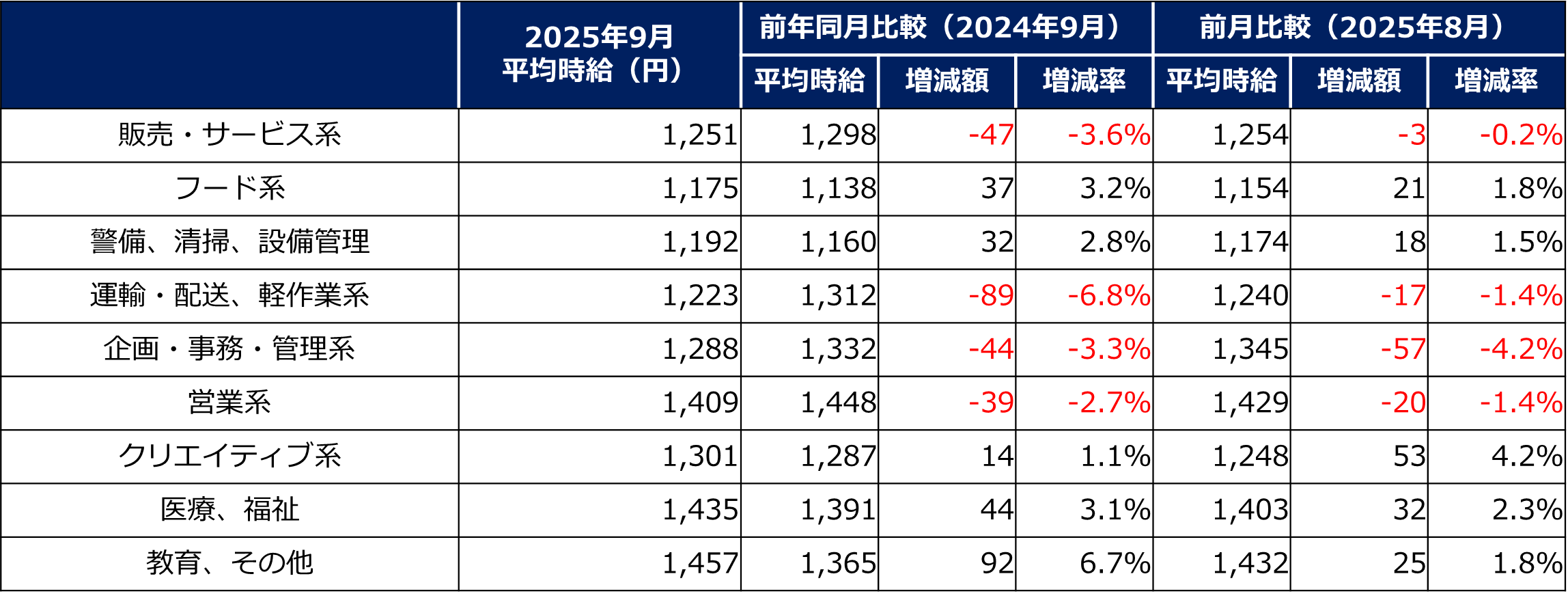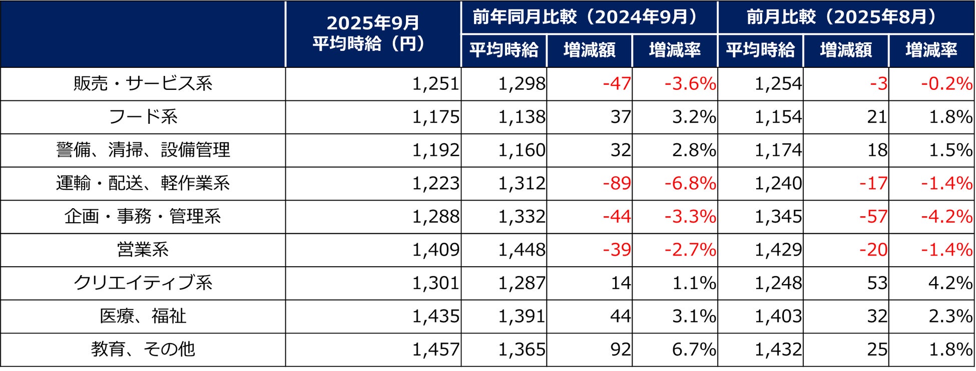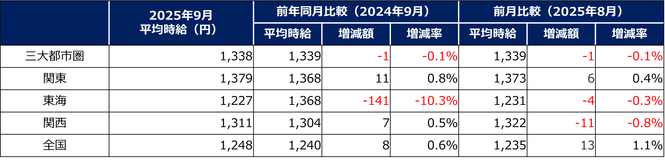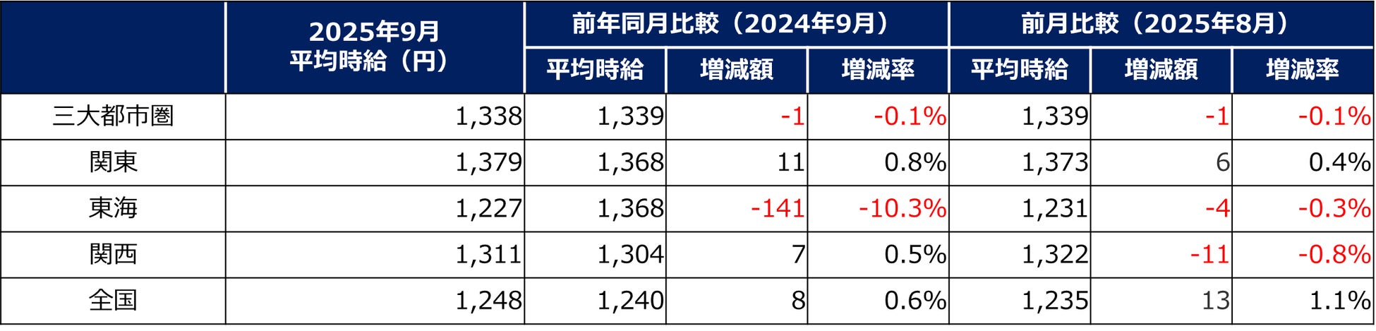 アルバイト・パート募集時平均時給(2025年9月度)三大都市圏は1,338円、全国は1,248円
