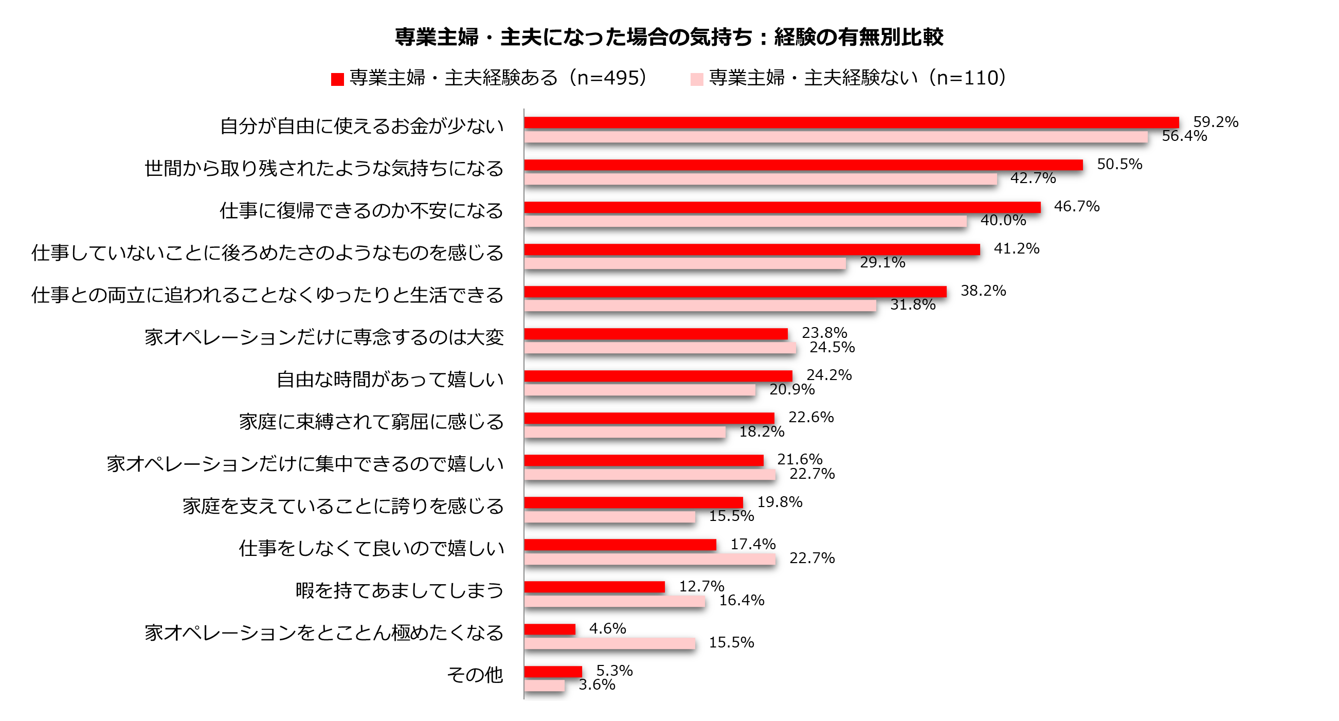 ※専業主婦・主夫経験が「ある」と答えた人の比率から、「ない」と答えた人の比率を引いた値。
