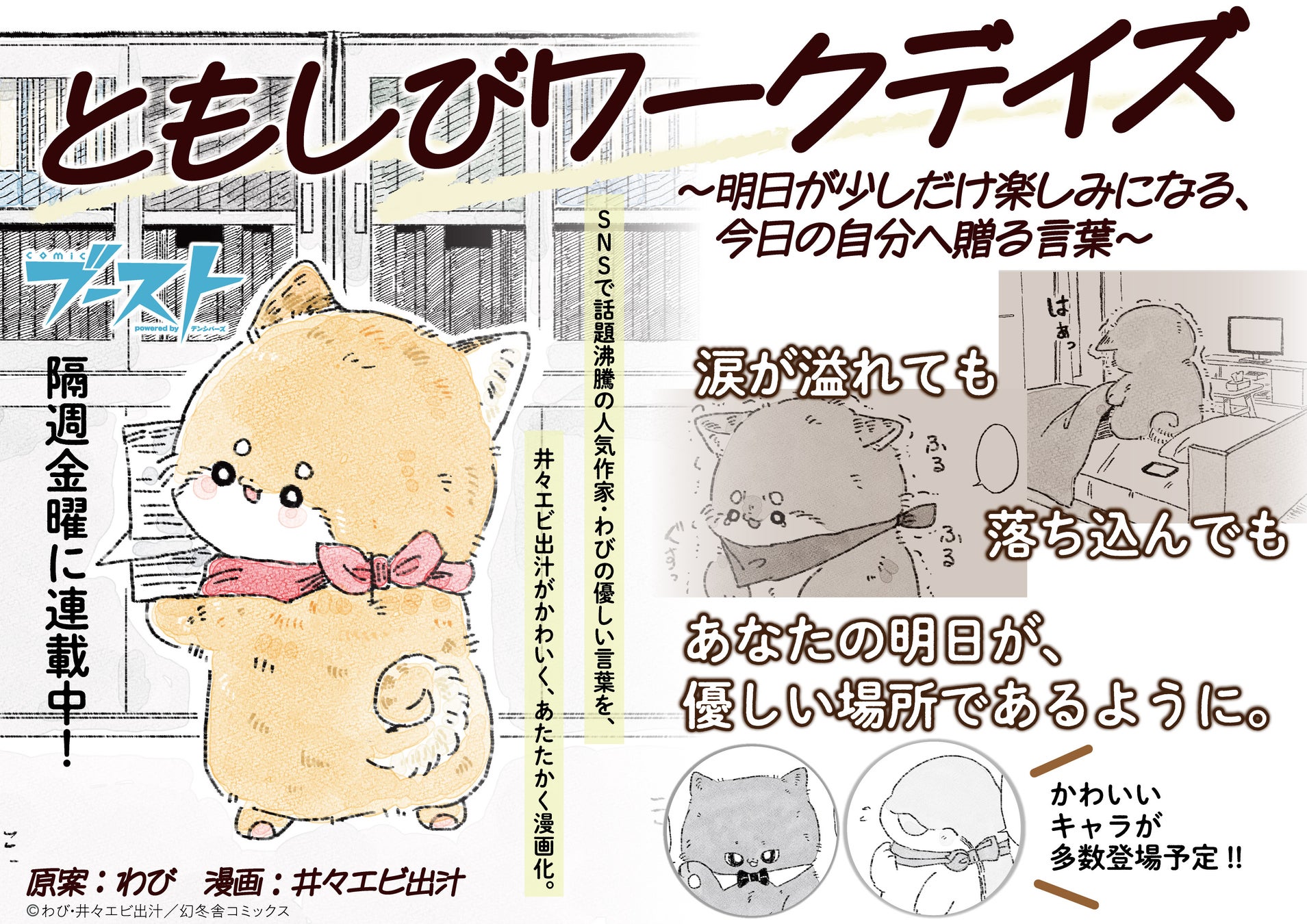 株式会社幻冬舎コミックス(本社:東京都渋谷区、代表取締役社長:石原正康)は、12月12日(金)より、「comicブースト」(https://comic-boost.com/)にて『ともしびワークデイズ~明日が少しだけ楽しみになる、今日の自分へ贈ることば~』の連載がスタートしました。