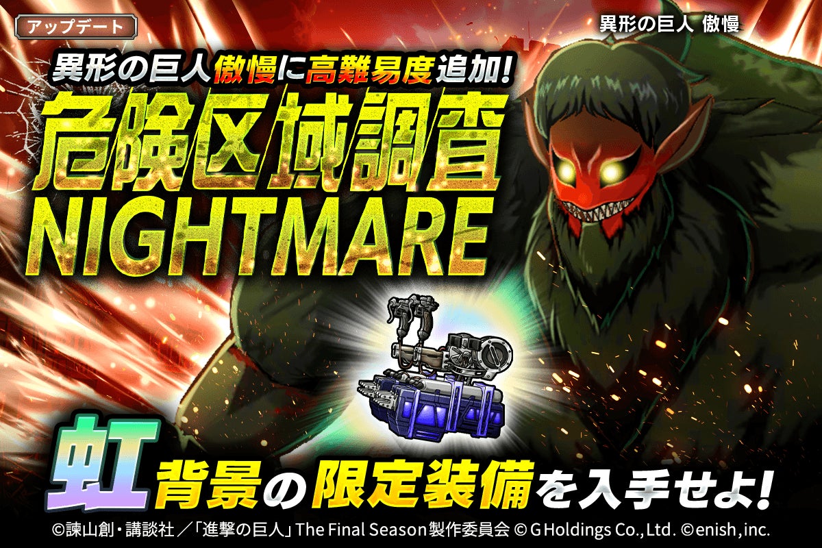 本日、2026年3月27日(金)に異形の巨人 傲慢にさらなる高難易度を追加!虹背景の限定装備を入手せよ!