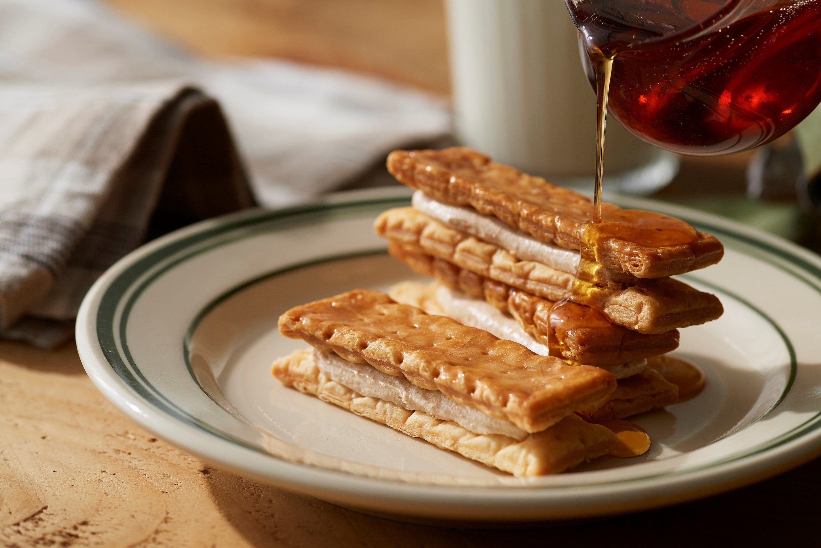 こだわりが詰まった、香ばしいサクサクのパイ生地にメープルシュガーを加えたメープルクリームをサンドしました。