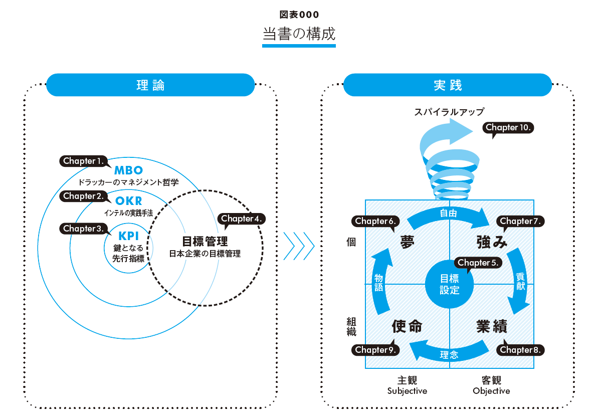 Chapter1~4はMBO関連の「理論」について、Chapter5~10は目標設定を通じた「実践」について書かれています。