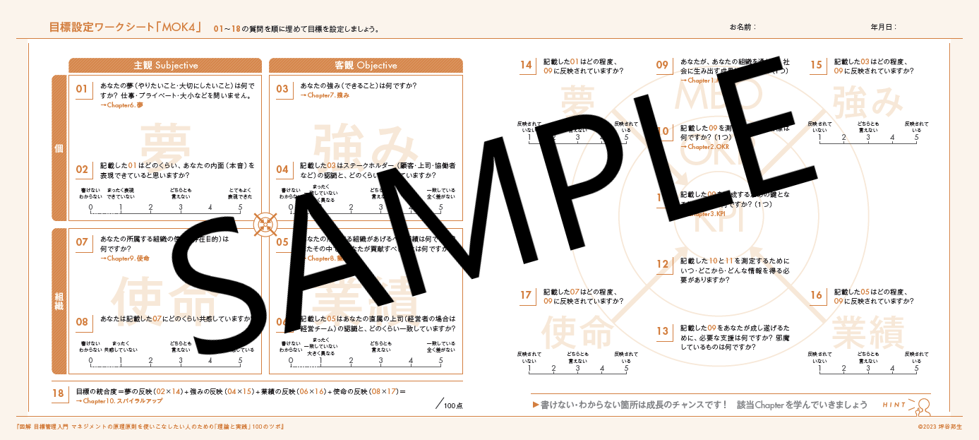 本書には目標設定ワークシート「MOK4」を特典として収録しています。