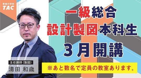 【TAC建築士】一級建築士(製図) 総合設計製図本科生 まもなく開講