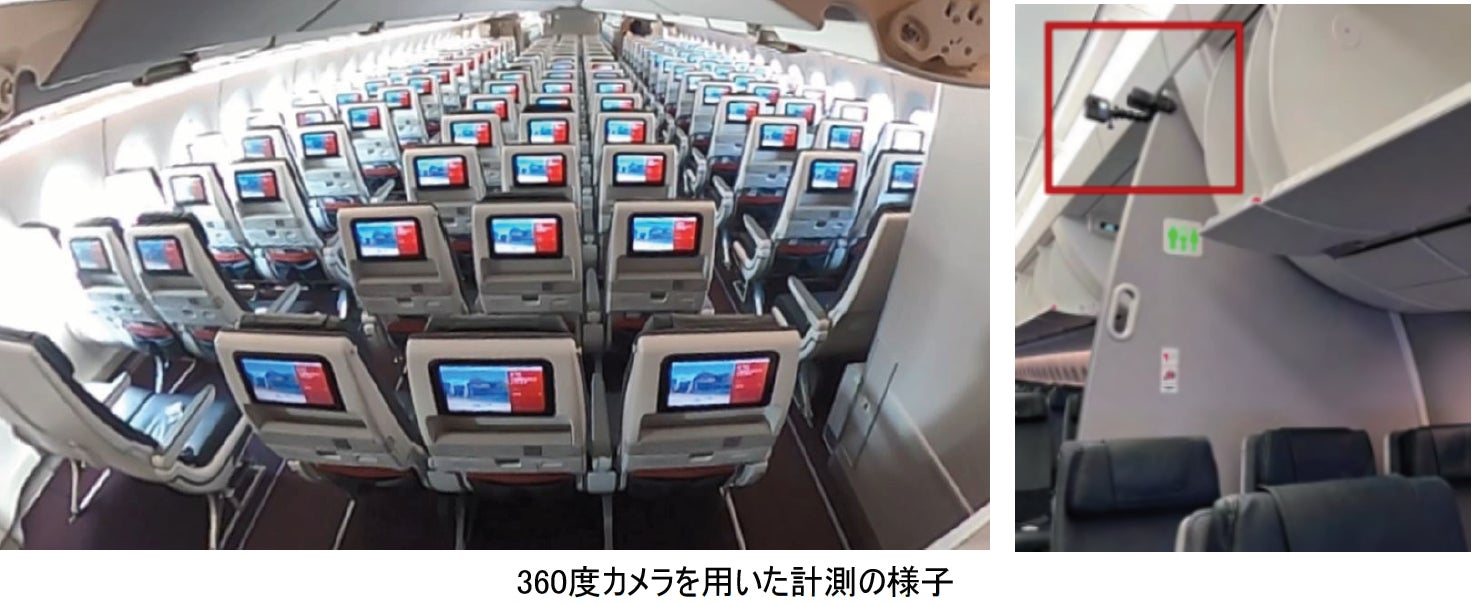 機内に設置した360度カメラにより搭乗中のお客さまの動きを計測し、得られたデータから独自の搭乗シミュレーションモデルを構築しました。このシミュレーションモデル上において、搭乗順序などを変化させ複数のシナリオを約1,000回にわたって試行することにより最適な搭乗方法を導きました。
