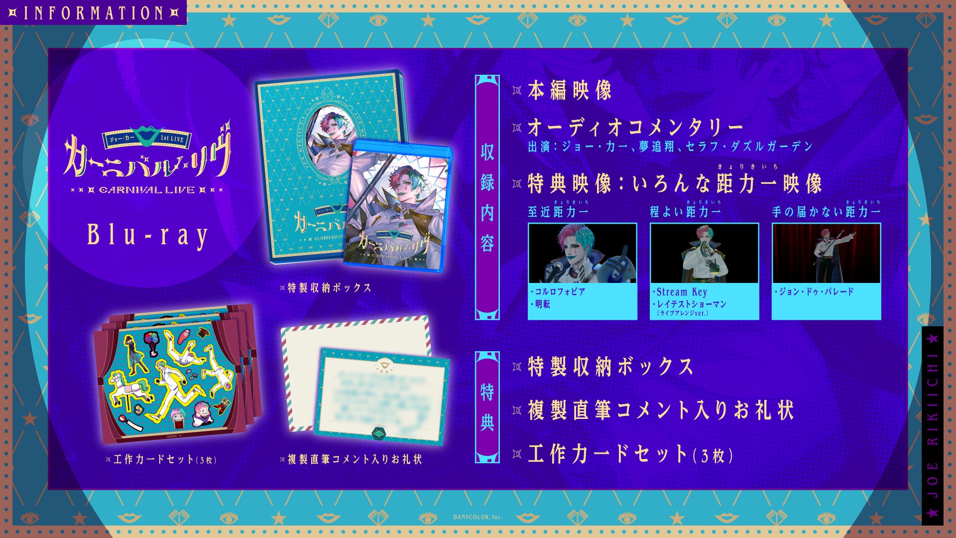 2024年6月14日(金)品川プリンスホテルステラボールで開催され、SNSを中心に大きな話題を呼んだ『ジョー・力一 1st LIVE「カーニバル・リヴ」』のBlu-rayは本日2024年12月25日(水)発売!